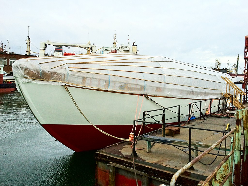 Po zwodowaniu gotowego kadłuba "Generał Zaruski" został przygotowany do zimy i dalszych prac. Teraz przyszedł czas na akcję przeniesienia i posadowienia wewnątrz kadłuba, silników głównych, zbiorników paliwa oraz agregatu prądotwórczego. Zobaczcie sami