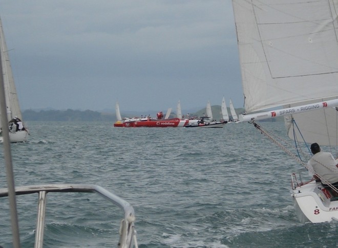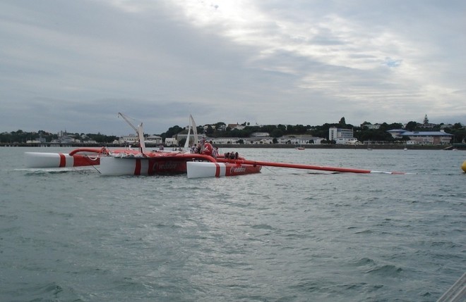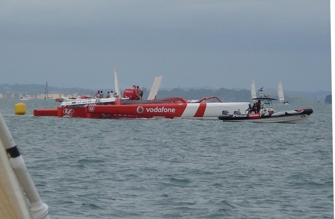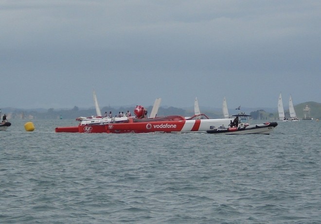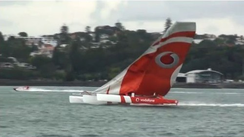 Podczas sprawdzania możliwości trimaranu TeamVodafoneSailing z katamaranem AC45 w Auckland płynący na czele trimaran osiągając prędkość 25 węzłów nagle złamał maszt u jego podstawy.