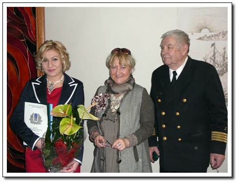 Otóż Marta jest najmłodszą Polką, która samotnie opłynęła świat, na przełomie lat 2008/2009, na jachcie "Mantra ANIA", za co otrzymała różne nagrody, wyróżnienia i tytuły. To zresztą nie wszystko - uczestniczyła także w I. Kobiecych Dwuosobowych Regatach Dookoła Świata, była oficerem na żaglowcach "Pogoria", "Gedania" i "Kapitan Głowacki", a w ubiegłorocznym sezonie podjęła próbę samotnego pokonania jachtem "Operon" osławionego Przejścia Północno-Wschodniego (z Atlantyku na Pacyfik, przez morza syberyjskie), dopłynęła nawet do Murmańska, dalej nie otrzymała jednak zgody władz rosyjskich, więc zawróciła do Portugalii. Marta ma już w żeglarskim dorobku ponad 50 tys. mil morskich, na morzach i oceanach całego świata, a w międzyczasie ukończyła też studia, jest magistrem turystyki i rekreacji. Dodam, że urodziła się w Poznaniu, mieszka w Gdyni. Te jej osiągnięcia i sukcesy, w połączeniu z młodością i radością bycia na morzu, pod żaglami, pod biało-czerwoną banderą, przekonały Kapitułę do wyróżnienia jej dyplomem Kpt.ż.w. honoris causa, bodajże jedynym takim w marynarskim świecie. Całość uroczystości prowadził ze swadą pisarz-marynista kpt.ż.w. Józef Gawłowicz, dyplom wręczył Marcie kapitan-senior kpt.ż.w. Wiktor Czapp, Prezes Stowarzyszenia, kolejny dyplom i gratulacje od żeglarzy przekazał laureatce Prezes ZOZŻ Zbigniew Zalewski, poprzednich laureatów reprezentowała Krystyna Pohl, władze AM prorektor kpt.ż.w. Przemysław Rajewski, byli ludzie morza i żeglarze, m.in. zdobywca Przejścia Północno-Zachodniego j.kpt. Wojciech Jacobson (wszyscy na zdjęciach)…