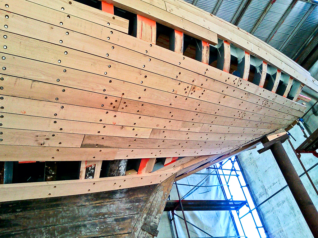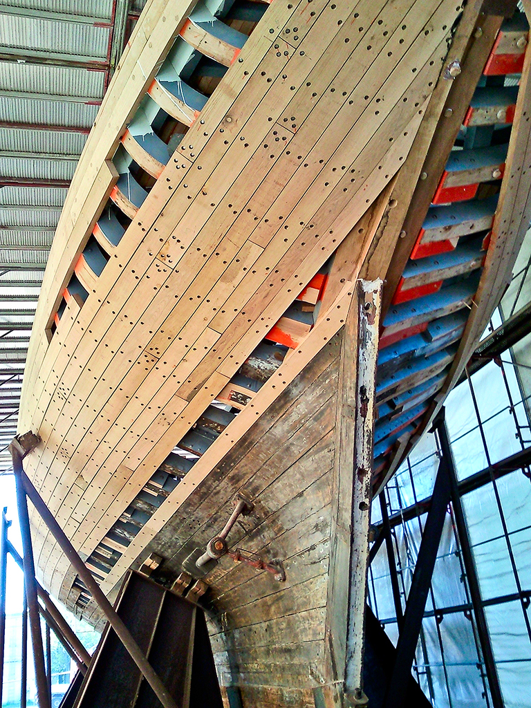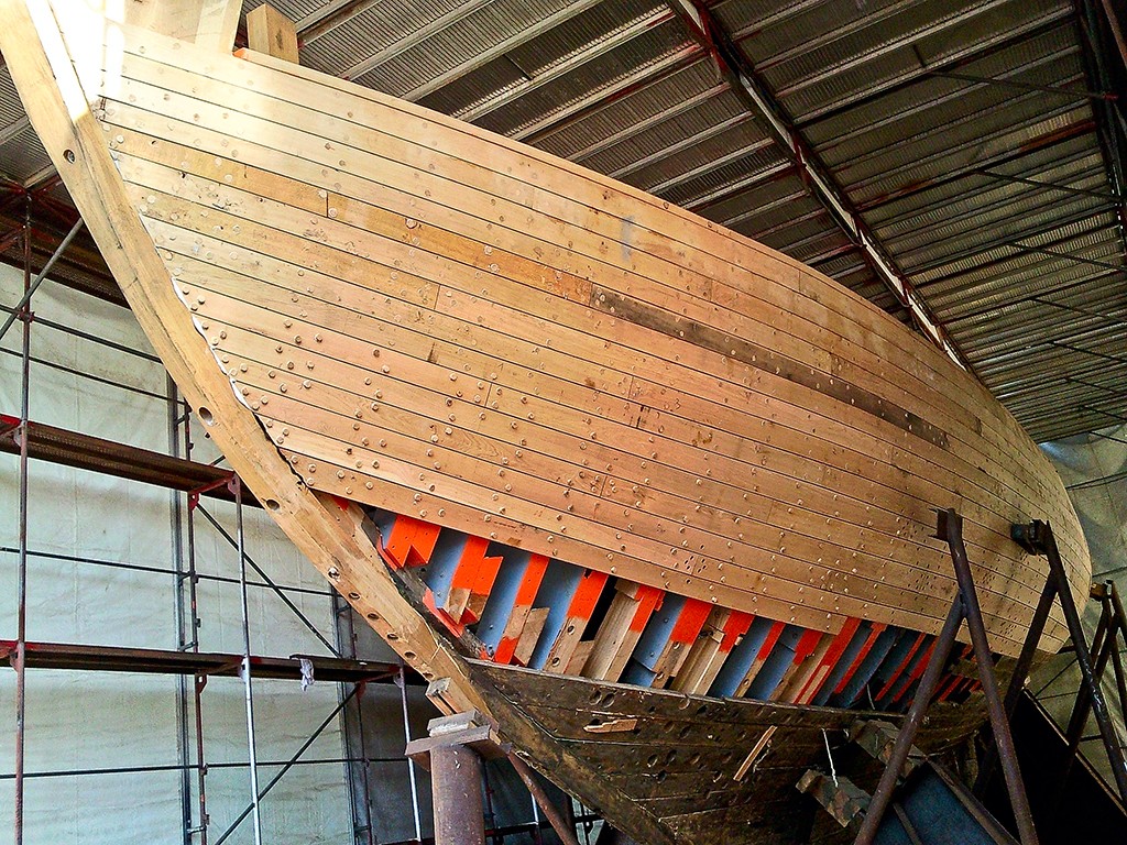 Takiego Zaruskiego już dawno nie mieliście okazji oglądać. Może nawet nigdy. Gdy w stoczni, w celach konserwacyjnych demontowano wewnętrzne poszycie namiotu oraz rusztowanie wokół jednostki, nadarzyła się okazja by uwiecznić ten widok. Choć poszycie jeszcze nie jest całkowicie gotowe, to już widać piękną i smukłą sylwetkę jachtu.