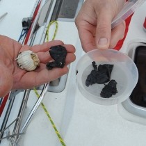 Wszystko działo się tak szybko, że nikt nie zdąrzył zrobić zdjęcia ale wieloryb pozostawił dowody swojej obecności - kawałki skóry i skorupiaka który pasożytuje na niej.