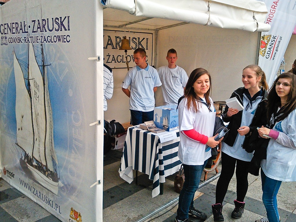 W tym doborowym towarzystwie i okolicznościach nie mogło zabraknąć projektu “Gdańsk ratuje Żaglowiec". Zaprezentowaliśmy się w pełnej przygotowanej specjalnie na nowy sezon krasie - w nowym namiocie, z nowymi skarbonami zbiórki publicznej i materiałami promocyjnymi. Nie zabrakło oczywiście pamiątek z Zaruskiego i płyt-cegiełek z szantami. Nieocenioną pomoc w przygotowaniu i prowadzeniu naszego stoiska okazali nasi młodzi przyjaciele z gdańskiego Gimnazjum nr 27 im. Mariusza Zaruskiego, pod kierownictwem pani Elżbiety Kowalik. Tą drogą pięknie dziękujemy im za pomoc i bardzo miłą atmosferę.