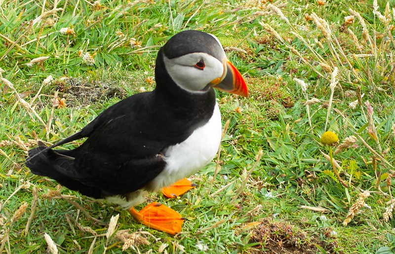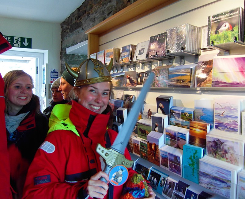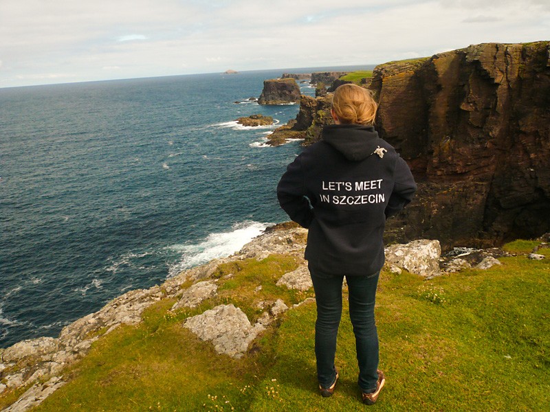 Same Szetlandy są bardzo interesujące, wyspy przeważnie pagórkowate pokryte trawą i krzaczkami. Prawie nie ma drzew, za to piękne klify na północnym-zachodzie, gdzie zawieziono nas autokarem. Organizatorzy zapewnili nam wiele atrakcji, z czego w miarę dostępności miejsc mocno korzystaliśmy. Na jednych stawiamy się w komplecie na innych mamy przedstawicieli. Zwiedzamy klify, stara osada archeologiczna + podglądanie ptaszków o nazwie Puffin, golf (nie mini tylko pełnowymiarowy), strzelanie ze strzelby do rzutek, zwiedzanie miasta Lerwick, basen i może coś jeszcze. Zatem czas spędzaliśmy bardzo aktywnie, choć do wycieczek nie zachęcała pogoda. Zimno, deszczowo i wietrznie, tutaj to chyba normalna pogoda. Ponoć rekordowe temperatury lata to ok. 23 stopnie, teraz mamy aż 13… taki tu klimat. Można by jeszcze wiele o Szetlandach opowiadać, o owcach, kucykach, Puffinach, łąkach, przestrzeniach, starym budownictwie czy Wikingach.