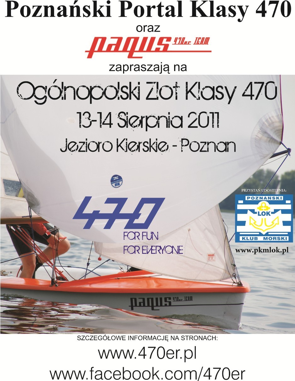 Organizator Zlotu - 470er.pl zaprasza na wody jeziora Kierskiego - centrum żeglarstwa w Wielkopolsce. Zlot promuje hasło: " for fun, for everyone" - aby podkreślić charakter imprezy. Na Zlot zapraszamy wszystkie “siedemdziesiątki" z całej Polski. Poznański Klub Morski LOK od samego początku “reaktywacji" wspiera klasę 470. Dzięki uprzejmości Zarządu klubu PKM LOK i udostępnieniu przystani pomysł zorganizowania Zlotu stał się realny. Mając do dyspozycji jedną z największych przystani nad jeziorem Kierskim śmiało można powiedzieć, że nie ma limitu miejsc dla 470-tek. Zlot ma na celu zintegrować środowisko żeglarzy związanych z klasą 470. W pierwszy dzień Zlotu, w sobotę, zaplanowano wspólny trening. W niedzielę na zakończenie Zlotu zostaną rozegrane trzy wyścigi. Sobotnią dyskusję na temat aktualnej sytuacji klasy 470 w Polsce zakończy ognisko.