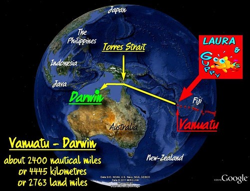 Obecnie Laura ma już 15 lat i przepłynięte ponad połowę drogi. Właśnie zmęczona i niewyspana dotarła do Darwin w Australii tuż po minięciu raf koralowych znajdujących się na północ od Australii. Poprzednim odwiedzonym portem było Vanuatu na Oceanie Spokojnym.