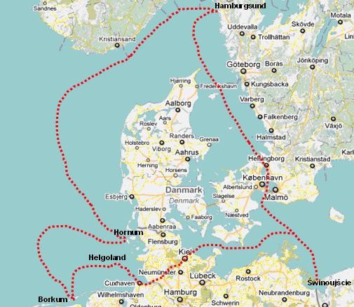 Trasa rejsu: Świnoujście – Kopenhaga – Hamburgsund (Limfiord) – Hornum – Borkum (Eemshaven) – Helgoland – Cuxhaven – Kanał Kiloński – Świnoujście.